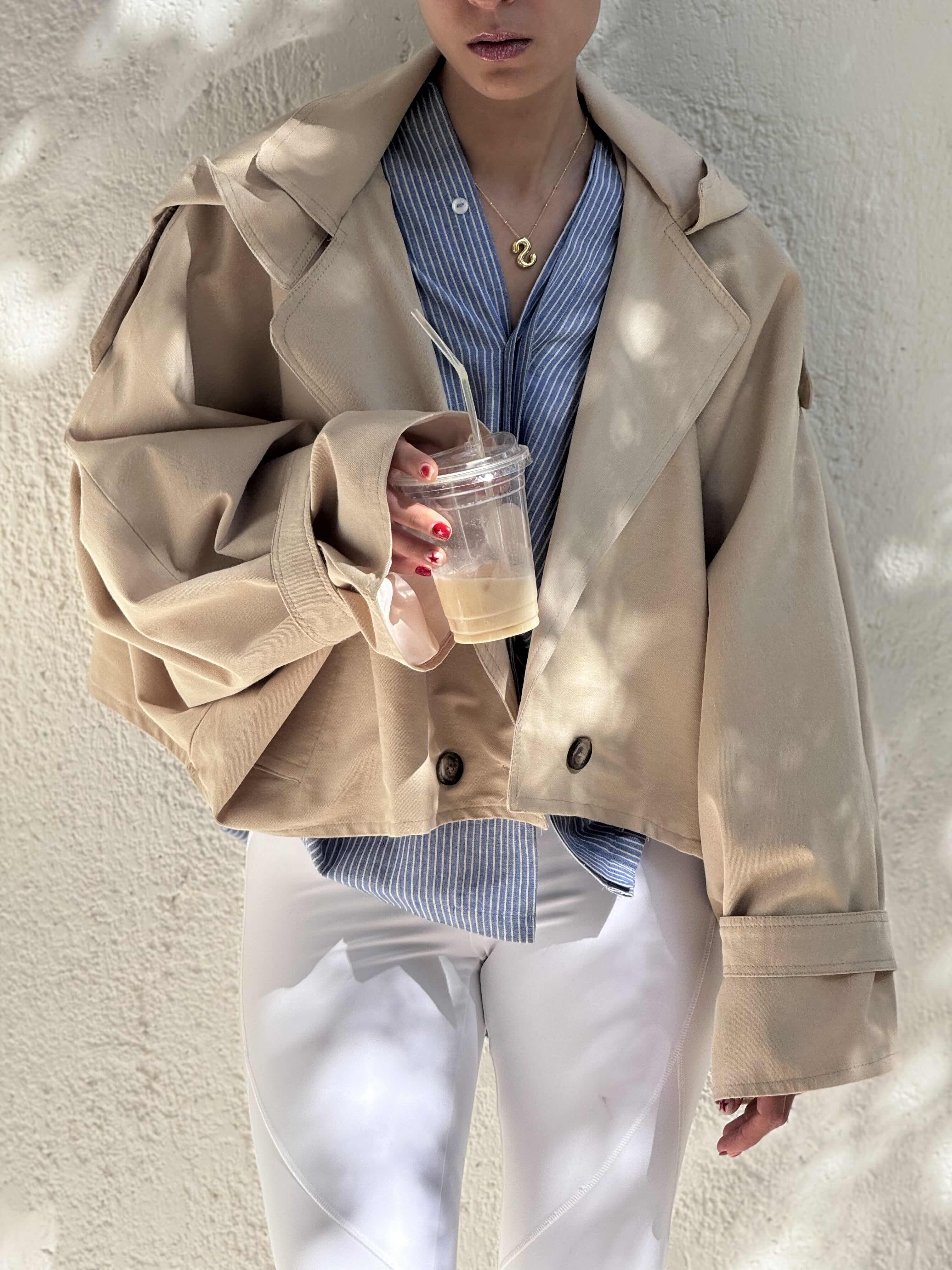لینک شومیز راه راه ابی زیر ترنچ کت: